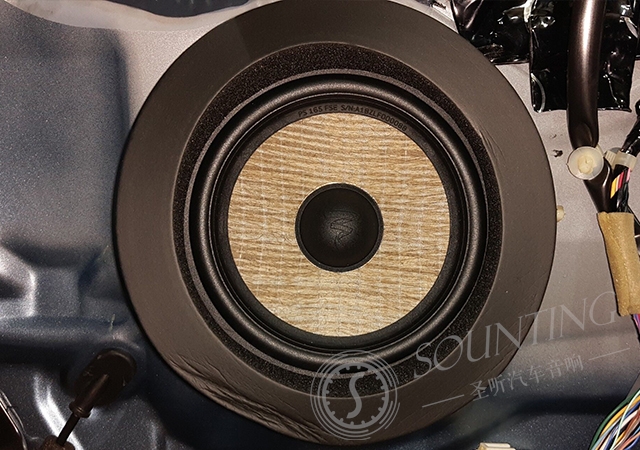 后声场选择的是法国劲浪PS 165 FSE亚麻盆两分频套装喇叭。这款喇叭是劲浪的新款超薄亚麻盆,专为浅位车门设计。采用钕磁铁更加小巧轻盈,紧凑型的分频器更加利于安装。